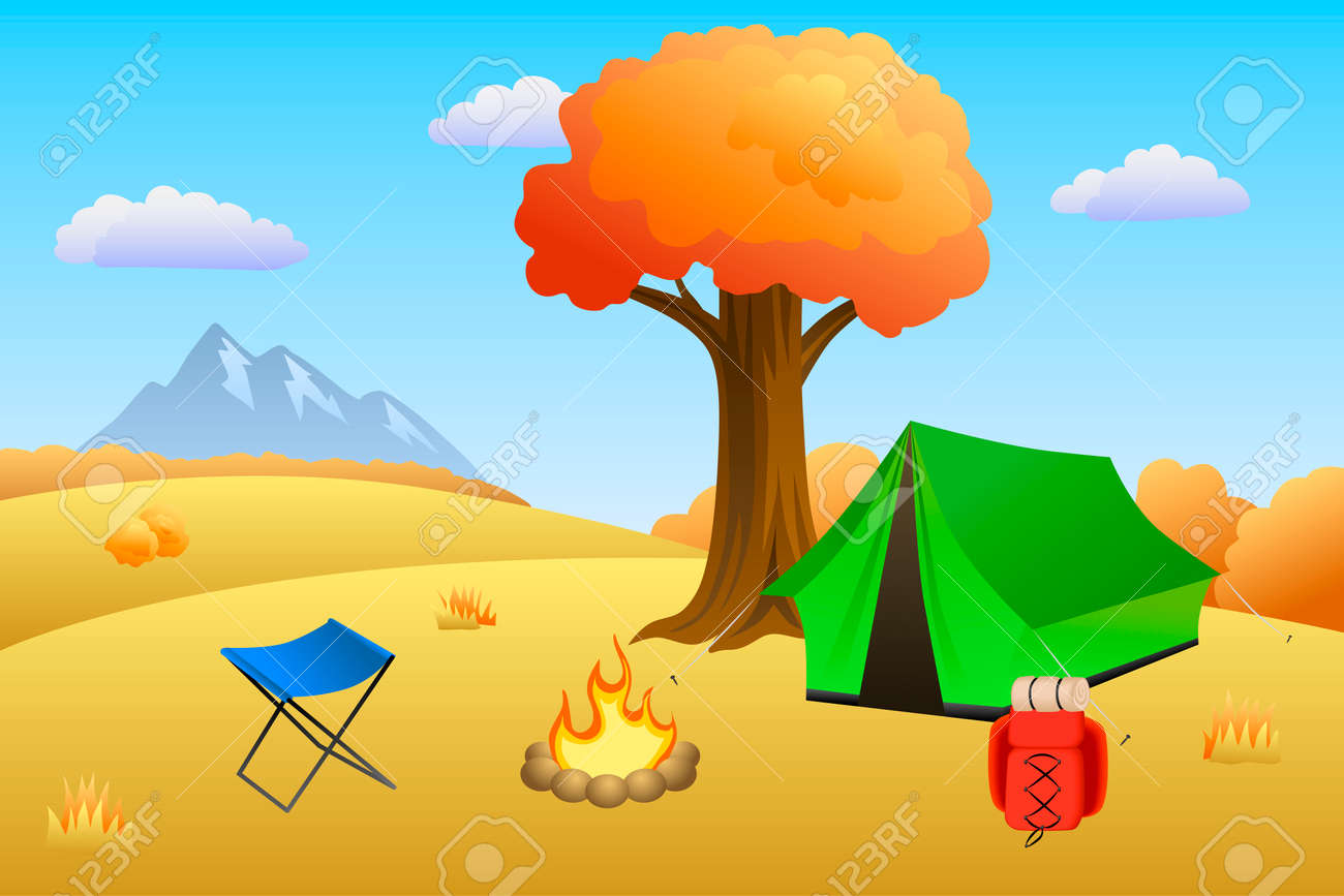 キャンプ 風景 イラスト